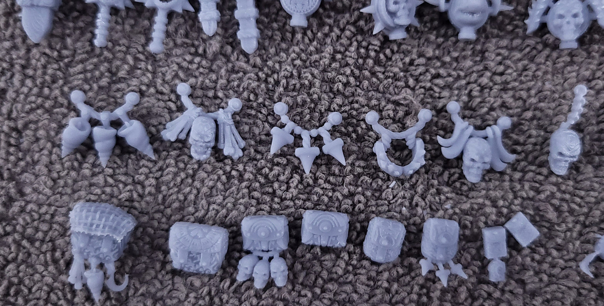 This is for a set of 62 various Wai Toa (Shark Knights) Accessories for grimdark sci fi tabletop wargames. See pictures for exact parts included.